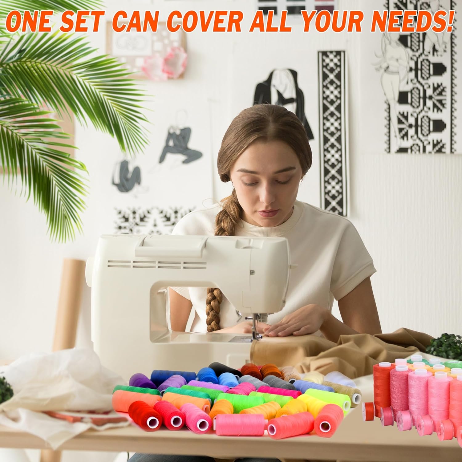 125 Pcs Sewing Thread Kit, 36 Assorted Colors Machine Threads with Spools, 400 Yards Prewound Bobbins Threads Set with 50 Pcs Machine Needles for Universal Sewing Machines Use