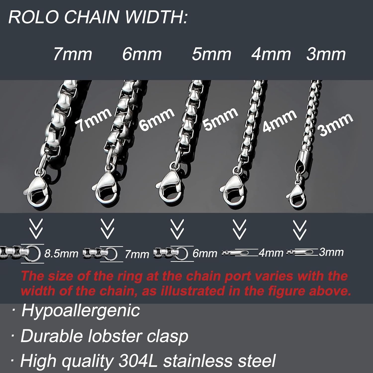 Silver Chain for Men – Stainless Steel Chains for Mens – Dog Tag Necklace for Pendant, 1-7mm 8-36inches Round Rolo Necklaces for Women