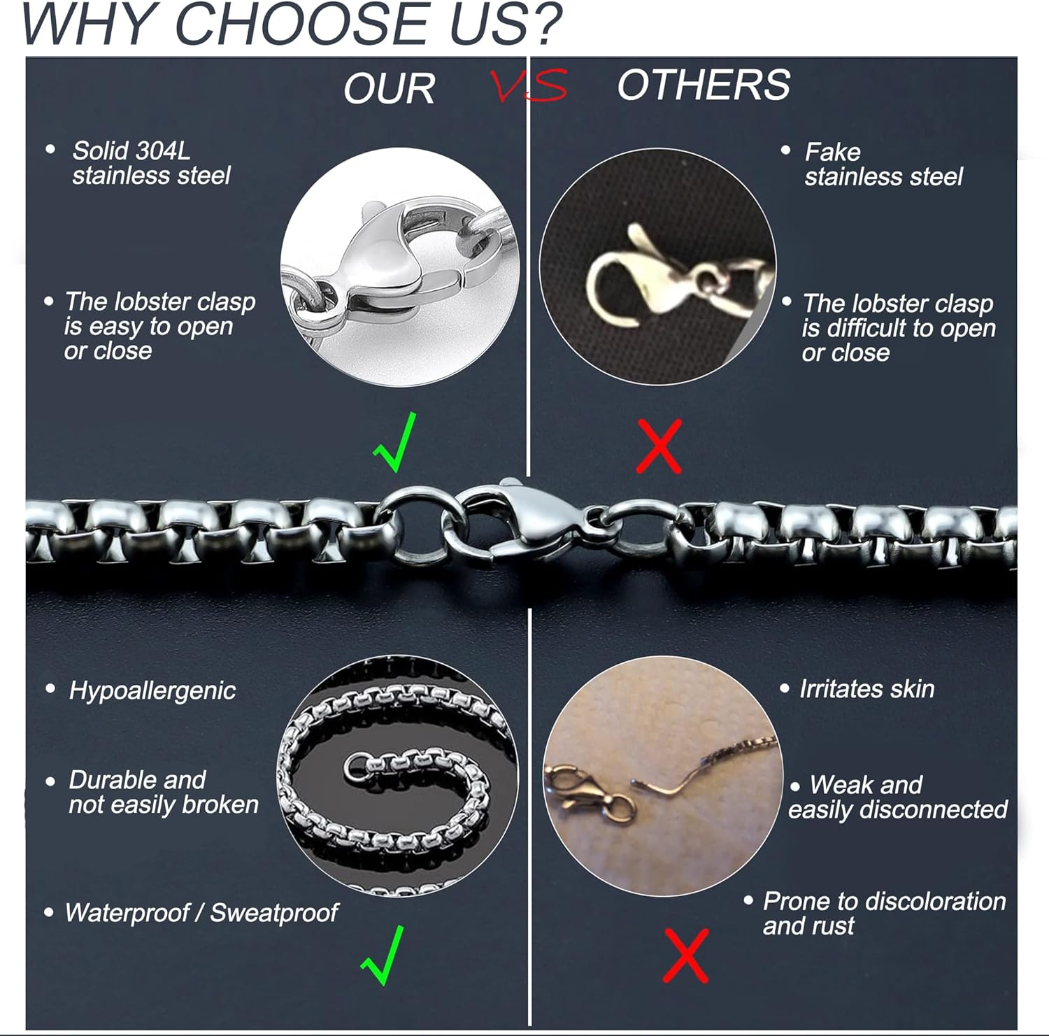 The included dog tag pendant adds a cool and edgy vibe to these chains, making them the perfect accessory for both men and women who want to showcase their unique sense of style.
